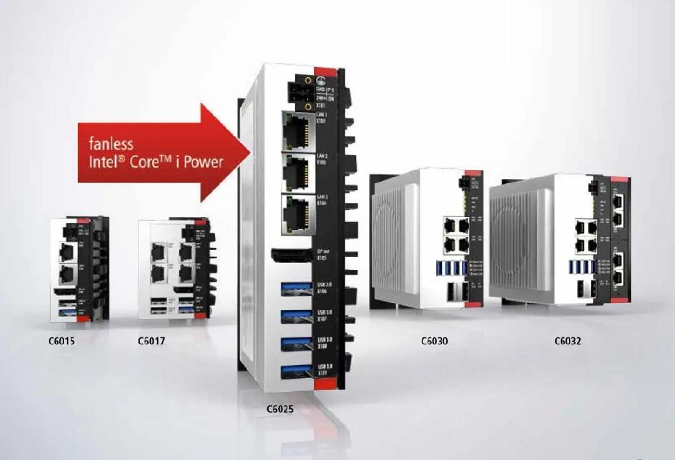 倍福最新推出的 C6025 工业 PC 尺寸仅为 82 x 127 x40 毫米,将高计算能力和无风扇设计完美结合于一体,是满足严苛的绿色“可持续 IT”要求的控制应用的理想选择。