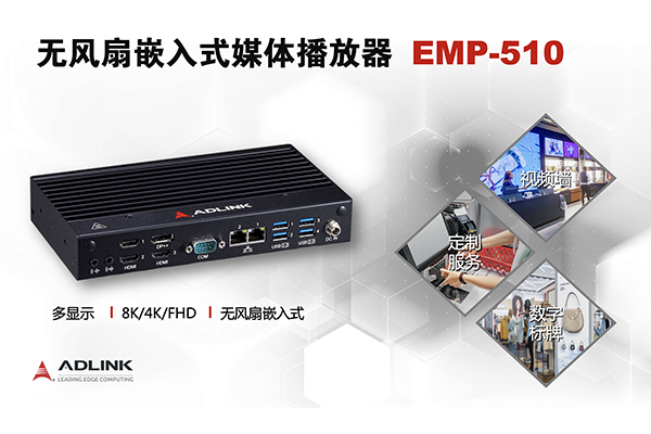 全球领先的边缘计算解决方案提供商—凌华科技宣布推出全新的无风扇嵌入式媒体播放器EMP-510,该产品具有强大的边缘AI计算性能、丰富的I/O端口、灵活的扩展插槽、多显支持以及紧凑型的设计,可在空间有限的应用环境中部署。EMP-510非常适合智能零售或信息娱乐行业的数字标牌和视频墙等应用场景。