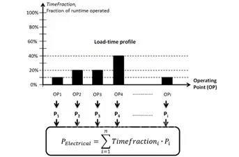 我们可以通过泵、电机和变频器这三个元素在部分负载时的效率,了解应用的负载时间曲线能使我们总结出在不同工作点下的效率,并计算出能效指数——系统的EEI。能效指数是一个完整系统的效率指标,根据所定义的负载时间曲线,我们可以选择最有效的变频器-电机-驱动设备组合,而且能够对系统进行比较,并在系统级执行优化。