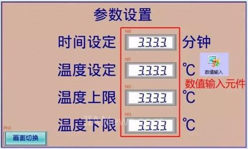 对于流水线时间、温度参数的设置,我们需要使用到“数值输入元件”;