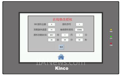 Kinco HMI软件提供了10级授权码可以进行设置,每个授权的时间和密码都不能相同,密码的等级按授权到期时间的先后来排序,时间越晚,等级越高,等级高的密码可以解除等级低的授权。