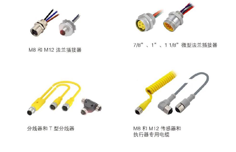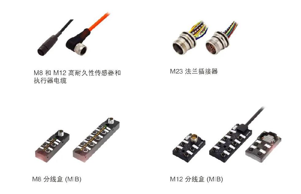 丰富的衍生产品,包括无源接线盒、多芯总线电缆、自接线插头、分线器、穿板接头、插口和适配器。