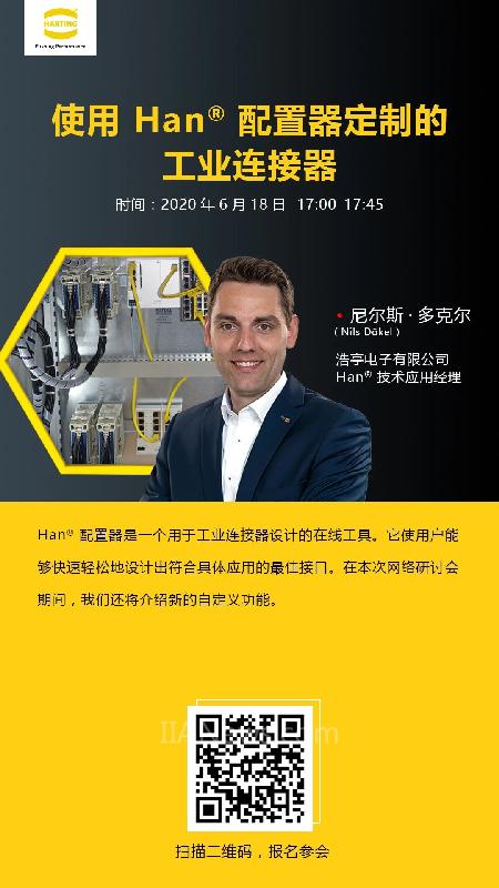 本次研讨会中,浩亭电子有限公司Han? 技术应用经理尼尔斯·多克尔(Nils D?kel)将围绕“使用Han? 配置器定制的工业连接器”这一核心主题,介绍如何利用Han? 配置器快速轻松地设计出符合具体应用的最佳连接方案。