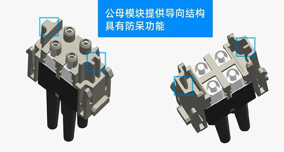 4. 公母模块提供导向结构,且有防呆功能