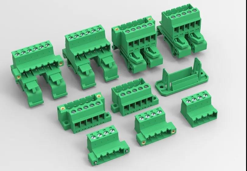 3.公端接线针座均有带导轨安装脚机种可选,可用于多种标准电气安装导轨;