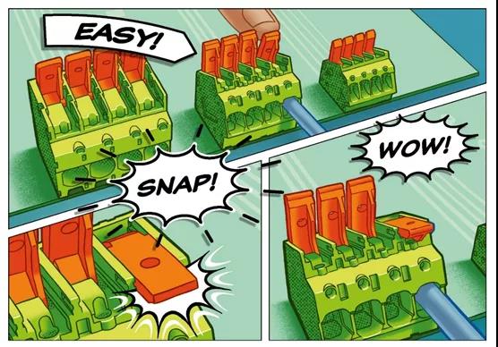 菲尼克斯电气最新的LPC/LPT系列带操作杆的PCB连接器,主要用于伺服控制的PCB连接器,采用独特拨杆式杠杆技术,打开操作杆,可以直接完成不带预制冷压头的多芯软导线的连接和释放,关闭操作杆,听到咔哒一声即完成导线连接。