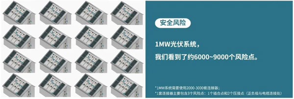 业内有一种说法,即把连接器简单称为“接插件”。但必须指出,它应该是“通流的接插件”。连接器的通流能力是由接触电阻决定的。在整个光伏电站生命周期内,连接器作为关键零部件,必须具备持续低的接触电阻和长期可靠性。否则,持续升高的接触电阻会大幅提升光伏项目的安全风险,降低运行效率。