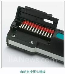 Crimphandy内置一个盛放冷压头的长条状进料仓。能够自动馈线,可不间断地处理多根导线。