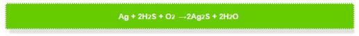 纯银的化学稳定性是比较好的,在大多数的酸碱中都不易溶解,但是它很容易与空气中的硫化物作用,生成黑色的硫化银。开始因生成的数量较少,看上去呈棕黄色,随着时间的延长,硫化银数量增多,整个表面就变成了黑褐色。