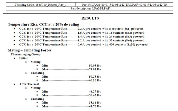 图6:为避免超规范加载,设计人员应一直确认连接器的插入力和拔出力,它们在产品质检测试报告中可以找到。(图片来源:Samtec Inc.)