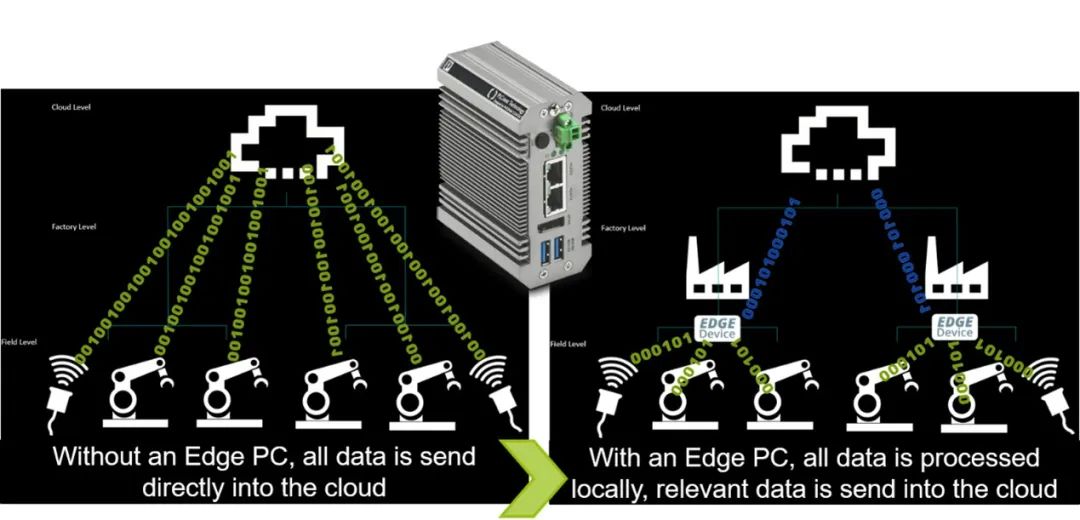 借助边缘计算,您可以将处理能力分配到互联网边缘,也称为“边缘”。更重要的是,借助位于远程位置的边缘 PC,可以减少或避免通过云传输大量数据,减轻网络负载。