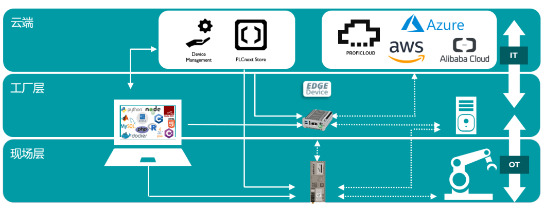 菲尼克斯电气的EPC 15xx边缘计算兼顾成熟工业PC平台的稳固性和PLCnext Technology生态系统的开放性,可用于开发智能物联网边缘解决方案,构建了IT与OT之间的桥梁。