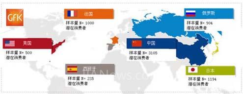2013年GfK在全球六个主要的汽车市场开展了电动汽车未来消费需求调研,包括欧洲的法国、西班牙和俄罗斯,亚洲的中国和日本,以及美国。样本完成情况见下表,其中中国大陆地区完成了3105份合格调研结果。综合对比六个国家的消费者对未来电动汽车的认知和购买态度,我们将其中一些有关中国消费者的有趣的研究结果分享给大家。