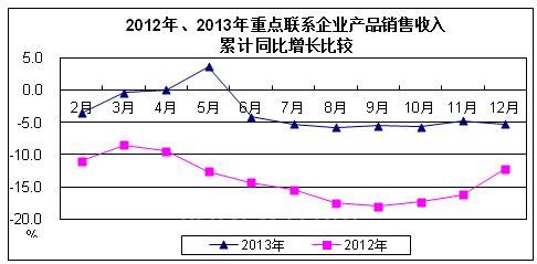 图1 2012-2013部分重点联系企业在手订单月度同比增长走势