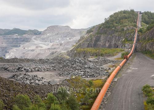 位于挪威索肯达尔的Titania A/S矿是世界上最大的露天钛铁矿,自1960年开始运营,每年产量近850,000公吨。用了15年的输送机将钛铁矿石从破碎机运到山下贮仓储存起来,然后经过压碎、混合、磨粉,生产出钛白粉 (TiO2),这种粉末作为产品增白剂,从颜料到牙膏都有使用。