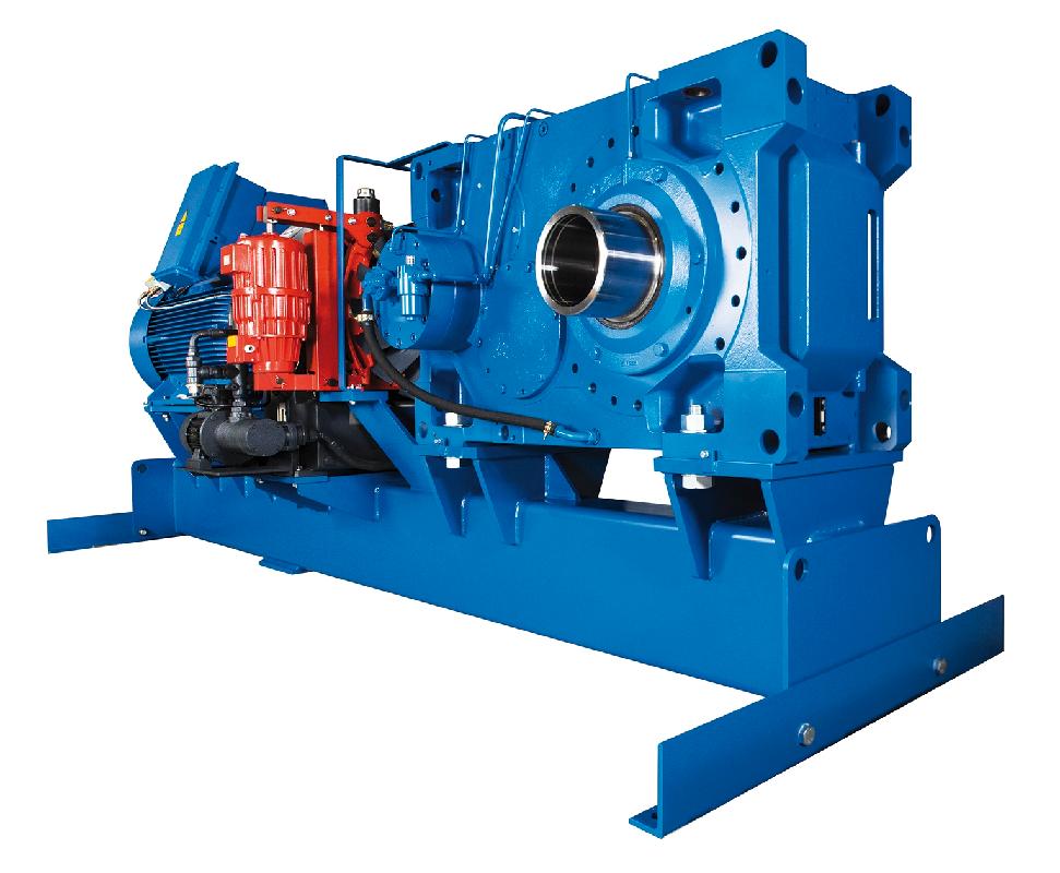 这款传输机驱动系统专为特定的应用而设计,拥有一体成型工业齿轮箱,可确保高的承载力和超高的可靠性。(为便于展示,图中已拆除制动器防护罩和齿轮进油口。)