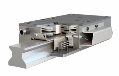 这意味着,它可直接安装在需抱持的物体上,因此拥有决定性的优势,特别是在加载重力轴时减少了电机和运动物体之间的元件对人体的危害,如主轴、主轴螺母、联轴器或齿轮箱,因此不会影响安全,这与电机制动器的概念相反,即所有的驱动元件需将制动转矩传递到滑架上。因此,使用ROBA®-guidestop安全制动器的系统比集成旋转制动器的伺服电机解决方案拥有更高的刚性。
