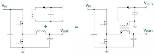图 1. 生成两路输出的隔离式降压转换器