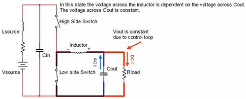 图 2A. MOSFET 导通时常规降压转换器工作状态