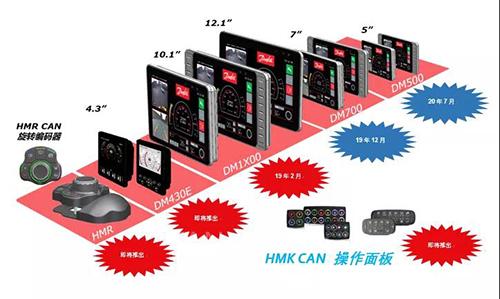 Danfoss DM系列显示屏从4.3" 到 12" 多种尺寸可选和多种需求可自由配置,DM系列屏图片编辑支持SVG矢量图; DM系列显示屏是 PLUS+1 家族的产品之一; 其中DM430可配置为Danfoss开发的EIC(J1939发动机信息处理) 应用; DM1000支持触摸和按键组合配置,DM1200 仅支持触摸功能。