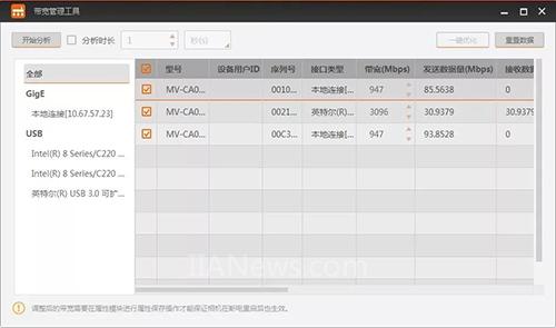 MVS3.1.0新增了带宽管理工具,用户可通过该工具分析相机的工作状态,自行分配相机实时带宽,网口相机还可进行一键优化,根据当前的网络环境合理分配带宽,避免了出现多相机工作时由于带宽分配不合理造成的丢包问题。