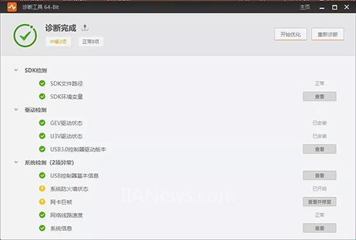 新版本MVS新增诊断工具,可对SDK、驱动和系统环境进行一键检测,也可快速导出诊断日志,帮助用户对软件异常问题进行快速定位和修复。
