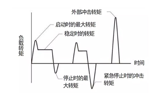 在启动、停止时由于要克服惯性外负载的作用,因此要对减速机施加一个驱动转矩,此时施加的转矩要比正常工作时的转矩大。为了避免减速机在这过程中超负载运转导致磨损,因此我们规定了一个明确的界线--“启动、停止时的容许转矩”,即在启动、停止时减速机的最大负载转矩避免超过这个值,否则有加速减速机磨损的可能性。详情请参考图一中的启动时的最大转矩和停止时的最大转矩。