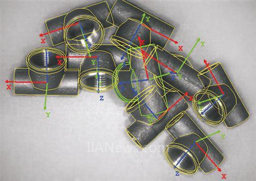 图1:使用Halcon将管接头与其各自的3D模型进行匹配的示例(来源:MVTech开发的Halcon)