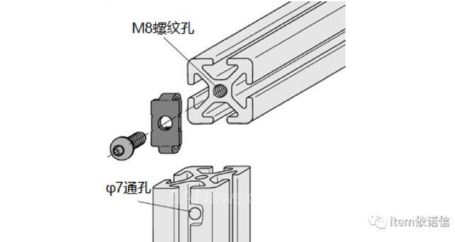 对于轻微降低负载的连接,42175 中的特殊自攻螺纹,可以直接攻入铝型材端面 6.8 底孔,进一步降低机械加工要求。