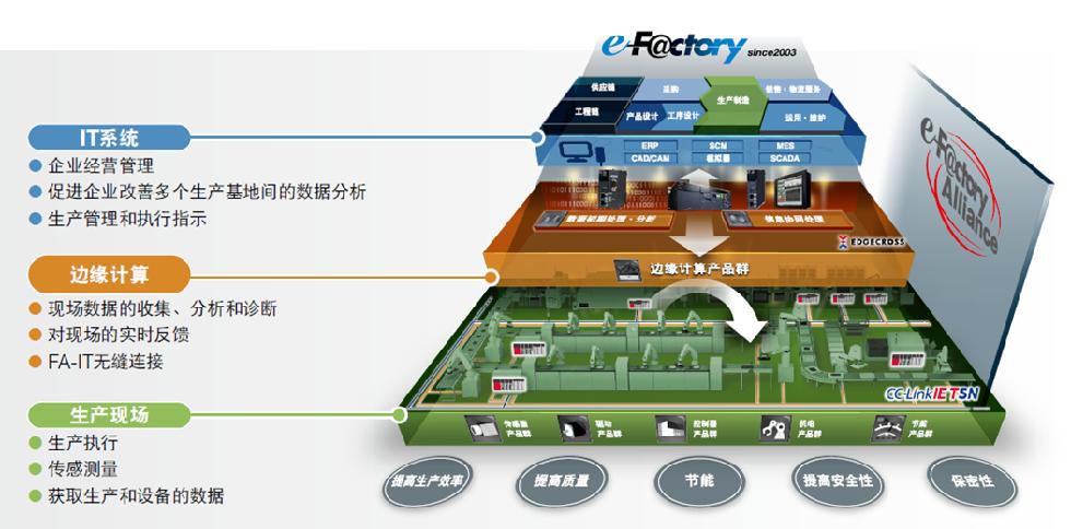 三菱电机FA-IT综合解决方案,通过联合Edgecross边缘计算领域软件平台,加速生产现场的各类工序的优化。