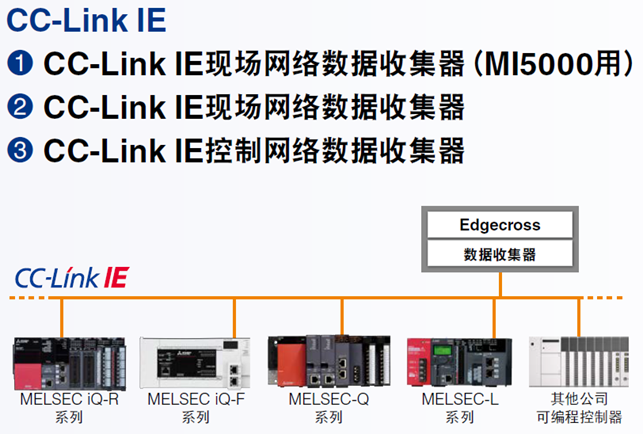通过预装软件,可方便地收集三菱电机FA设备的数据。还可通过追加软件,方便地收集其它公司产品的数据。内置CC-Link IE Filed网络、CC-Link IE Filed Basic网络功能,可简单地连接对应机型。