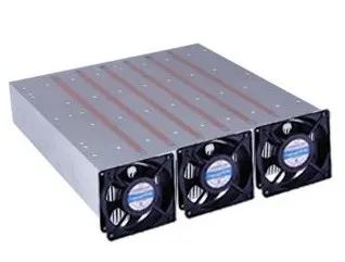 半导体激光芯片作为核心元件被封装在一个密封的金属壳体中,形成一个完整的半导体激光泵浦,在工作中会释放大量的热,如果是一台1500W的激光器满功率运行,按照泵浦电光效率55%计算,其半导体泵浦散热功率大约在2100W左右,当环境温度30摄氏度时,半导体泵浦壳体温度在44摄氏度左右,此时激光芯片温度即可达到75摄氏度以上,如果环境温度达到35摄氏度以上,激光芯片工作温度将高于80摄氏度以上,面临着极高的失效风险,所以对于传统强制风冷的散热方式来说,整机2500W左右的热量需要通过铝制散热器进行自然对流进行热交换,其难度可谓巨大,加上激光芯片在高温运行下的失效风险,无法满足设备长期可靠的连续运行。