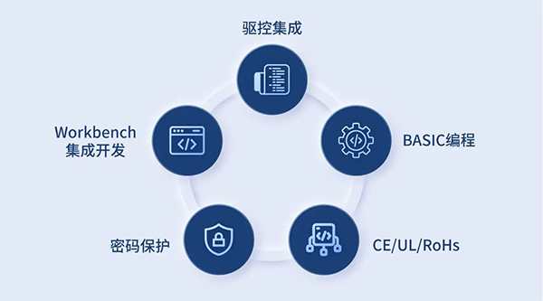 BASIC编程语言应用广泛且简单易学,有助于更复杂运动流程的快速编程。驱动器本身带有控制函数,并支持条件语句、轨迹固化、凸轮系统、电子齿轮、S曲线、无限运动轮廓和更先进的运动控制应用。编程功能可以访问所有驱动器内部资源,结合对模拟量和数字量的输入输出信号处理,利用高级语言优势,可以很简单的实现丰富的控制算法。