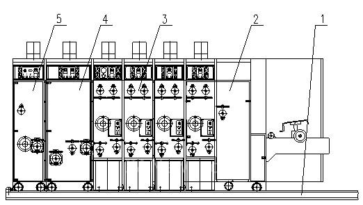 1、 轨道 2、送纸部 3、印刷部 4、开槽部 5、模切部