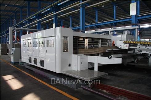 印刷机设备主要由轨道、送纸部单元,印刷单元,开槽单元和模切单元组成。其中,轨道为其他部件的支撑体,用于承载其他部件的质量和引导其移动;送纸部是印刷机的起始部分,它是将送纸桌上的纸板自动、连续、准确的送入印刷、开槽以及模切等部分,纸板通过送纸部后,表面变得清洁,从而使印刷质量得到了有效保证;印刷单元一般由1~6组相同的设备组成。每个色组对应一种颜色,纸板经过印刷单元时候,依靠纸板与印版之间的重合,使印版上的油墨附着在纸板上,从而完成对纸板的印刷;开槽单元承接印刷完毕的纸板,对纸板进行压痕、修边、开槽、切角、打孔等加工,使印好的纸板变成纸箱箱坯;模切单元对印刷好图案文字的纸板进行纸箱箱坯的滚切加工。纸板依次进过送纸、印刷、开槽和模切(可选)后,成为印好图案的纸箱,再经过后续设备的加工处理,就可以变成完成完整的纸箱了。根据纸板的规格,印刷效率一般在每分钟100~300片之间。