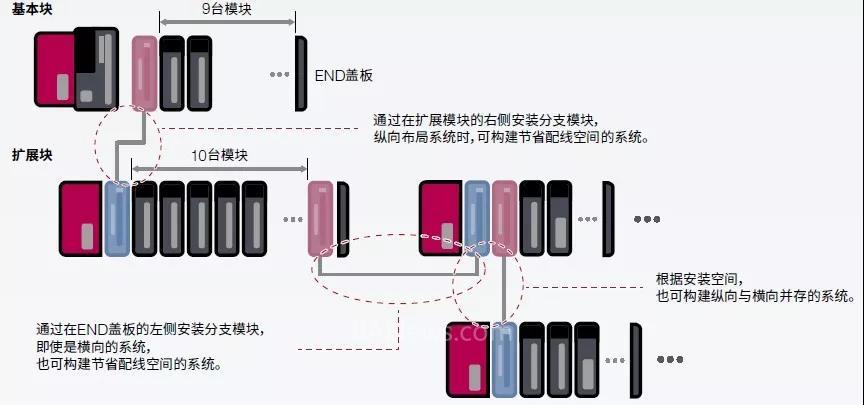 安装时不受基板尺寸的制约,可最小空间安装。模块追加时也没有基板插槽数的控制,可抑制扩展基板追加等的系统成本。既有L系列模块可以原样使用,通过与既有系统的维护备件共享削减成本。