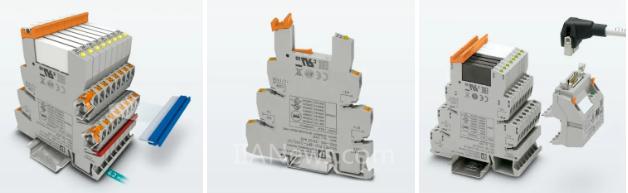 3、PLC继电器系统及系统布线产品,结合PLC-INTERFACE继电器系统和相应的系统布线产品,在控制器和继电器之间建立快速插拔式连接。