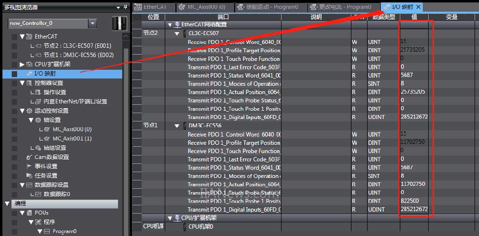 在I/O映射中,可对PDO变量进行监控,如下所示: