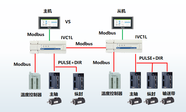 辽宁省锦州市某包装机械有限公司,多年来以出色的药品包装机而被广大用户熟知。该司最新型的颗粒包装机系统由主机和从机两部分构成,客户预备升级改造设备的系统提升生产速度,让主机和从机都能进行药品包装,且要求包装袋长在5~9cm之内,切刀数可调,每盒成品数量可调(3~7袋/盒),纵封、横封、打字等部件的温度可设。