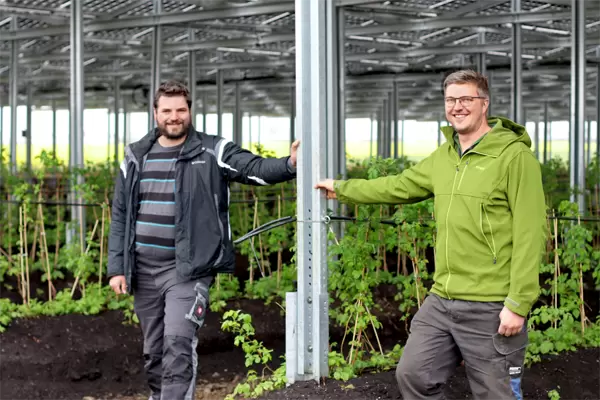 对农场主兼电气工程师费边·卡尔萨斯在威斯特伐利亚东部布伦种植的浆果而言,这些都不重要。正如它们的主人自豪地告诉我们的那样,在4200平方米的太阳能屋顶下,草莓、蓝莓和树莓都长势良好。“第一年我们已经收获颇丰,无论是在大小还是味道上,这些水果都超过了平均水平。”