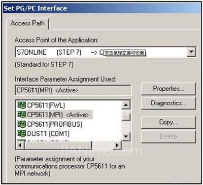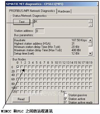 如果此时通讯有问题,应检查网卡是否安装正确,通讯电缆和接头是否接触良好,组态参数是否正确等,如果使用CP5511,CP5611 或CP5613 通讯卡,诊断起来就比较简单,在PC 机的控制面板 PG/PC 接口中,利用这些CP 自身的诊断功能读就能出MPI 网络上所以站地址,具体可参见下图: