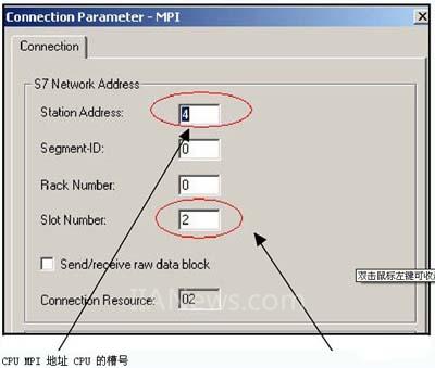连接S7-300 CPU 时槽号都是2,连接S7-400 CPU 时,槽号应参照STEP7 硬件组态中的槽号,所有这些工作完成之后通讯就可直接以建立起来。