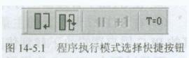为了选择仿真PLC的程序执行模式,在S7-PLCSIM应用窗中设置有“程序执行模式”选择快捷按钮,用于选择程序执行模式。