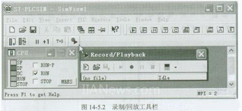 点击“录制/回放”快捷按钮(图14-5.2中鼠标所指的按钮),或者选择菜单“Tools”一“Record/Playback”,可以在显示区弹出图14-5.2所示的“录制/回放”工具栏。