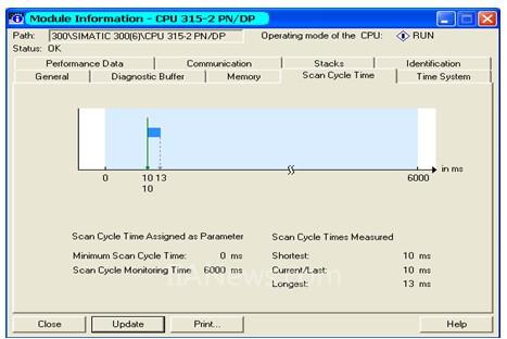 大家注意,这里t的时间是8s,我们知道,一个程序的扫描周期很短,可能才十几----几十毫秒,在线时候可以监控到Scan Cycle Time。如图6