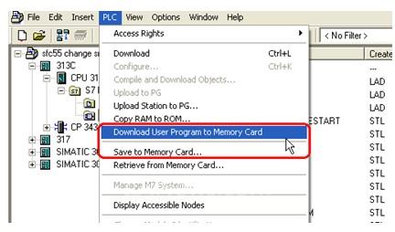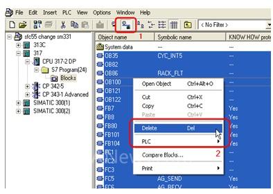 方法2:选中“Blocks” ,按照图17所示菜单进行下载(删除MMC卡中所有的块,并把新的程序写到卡中,同时对CPU RAM进行一次复位)。