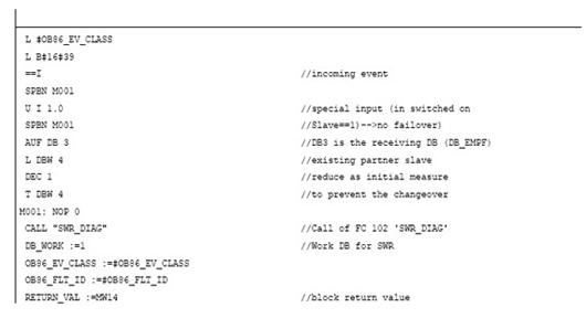 回答: 软冗余系统中会使用一些特殊功能的DB 块,在FC100“SWR_START”中定义,如图4: