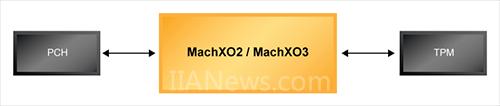 莱迪思的MachXO2/3器件提供各类桥接解决方案。例如,服务器设计工程师可以使用这些器件将PCH SPI接口与TPM模块(在中国以外的国家使用)或TCM模块(在中国使用)连接到同一硬件上(图8)。该桥接可适配输入和输出的各种工作频率。
