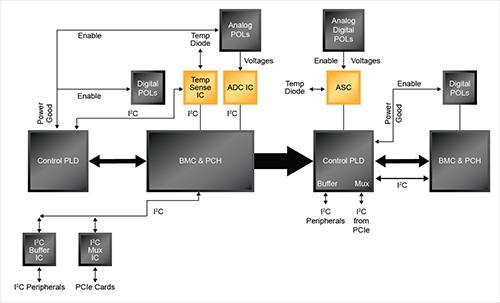 因此,使用分立器件的解决方案不仅会拖累新款服务器硬件产品的上市进程,还会随着所需元件数量的增加而导致成本上升。此外,更改设计有时需要重新改整个电路板,不仅进一步拖延了项目进程,还增加了成本。