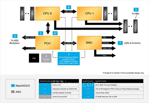 图1:8个PLD功能说明的服务器设计框图(设计实例)